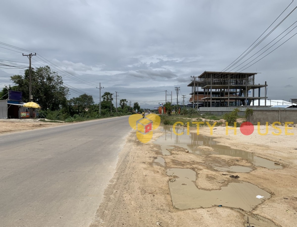 This land is located along the main road and in developing area where is borey, factories, and warehouse are rising year by year. This land is good for using to make flat house for sale, shop, warehouse, keep for trading or for doing other business.