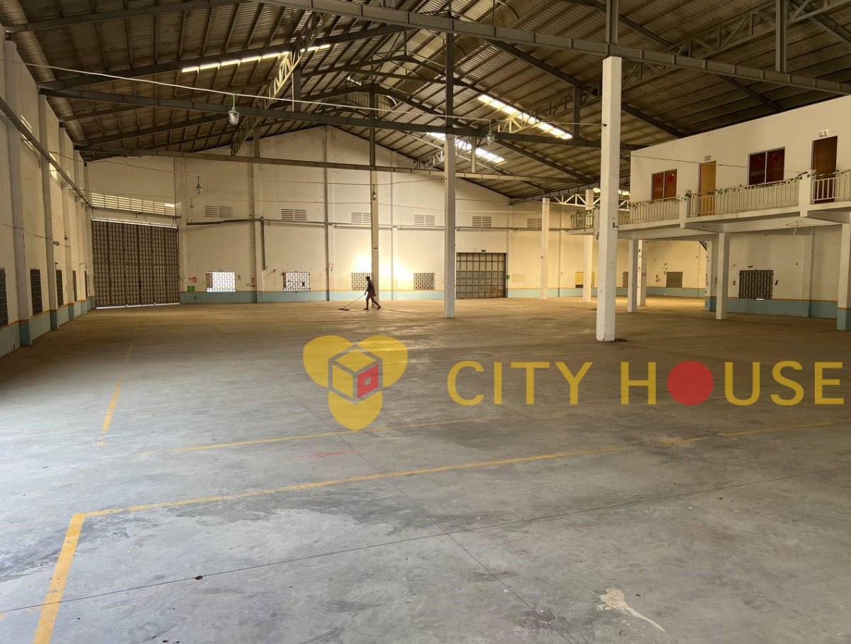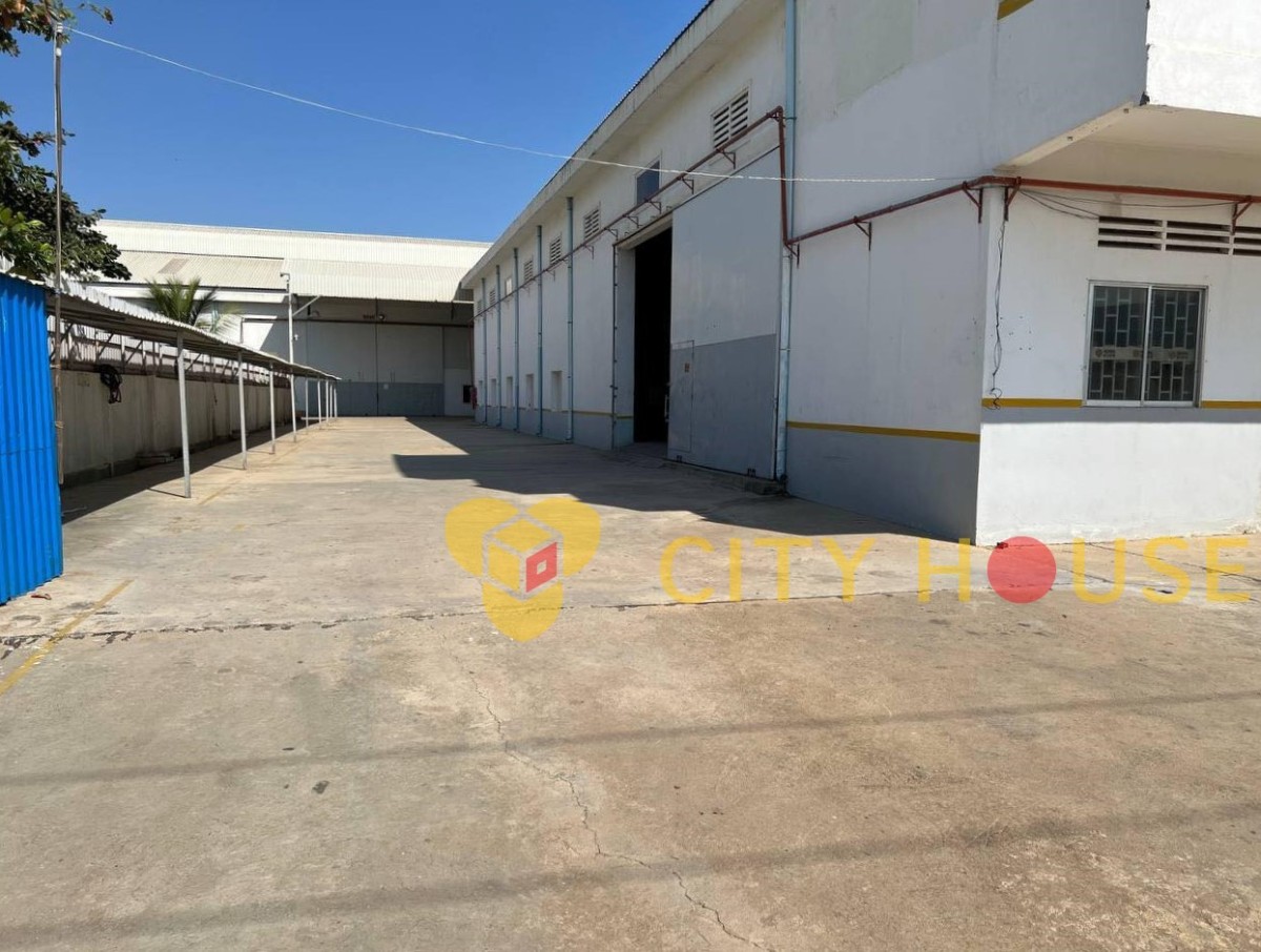 - Description: This warehouse is location on the big road , nearby Som bour Meas Pagoda. Surrounded by School, Hospital, Office, and many business shop. This property is suitable for resident, stock equipment and factory.